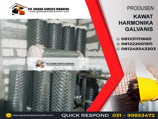 Kawat Harmonika atau biasa disebut Kawat Ram anyaman ini saat ini sudah banyak dipergunakan dan sudah dikenal luas oleh masyarakat umum, bukan hanya untuk Proyek saja, karena dari itu kami selaku Produsen / Pabrik Kawat Harmonika di surabaya ingin memberikan INFO PENTING mengenai HARGA Khusus Permeter Persegi 2023 bagi Anda yang membutuhkan Kawat Harmonika dengan Volume Besar. Untuk yang kebutuhan kecil atau sedikit…tenang saja ya tetap akan ada DISCOUNT. Yuk ah…. langsung saja di kontak no HP Marketing atau Website kami yang sudah ada disini, gampang kok tinggal KLIK saja.